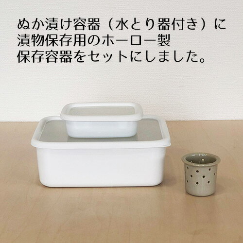 -------------------------------------------------------------- ⇒ちょっとぬか漬け単品はコチラ -------------------------------------------------------------- 商品説明 ホーロー製の冷蔵庫に入るサイズのぬか漬け容器に 漬物やちょっとしたものの保存に便利なSサイズの琺瑯容器をセットにしました! 酸やアルカリに強いホーロー容器でおいしい漬け物を。