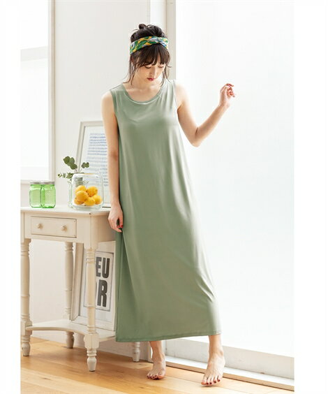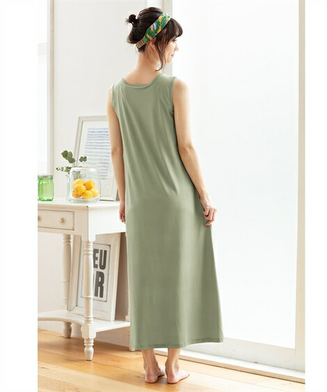 パジャマ トップス レディース アンダーフリー 吸汗速乾 ノースリーブ ワンピース ルームウエア カーキ/ボーダー/黒 LL/3L ニッセン