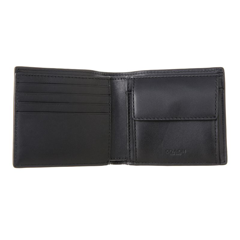 ブランドコーチ / COACHアイテム折財布仕様詳細■オリジナル品番:F75363 BLK■サイズ:(約)縦9cm 横10.5cm マチ2cm ■素材:牛革■仕様開閉:オープン内側:札入れ×1、カードケース×4、小銭入れ×1、ポケット×2ご注意事項サイズは手作業による採寸のため、若干の差異がある場合がございます。