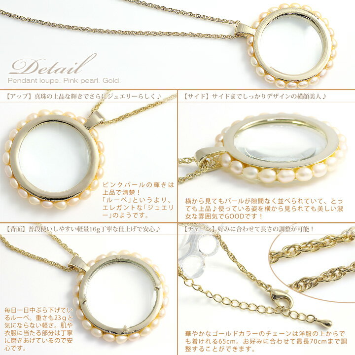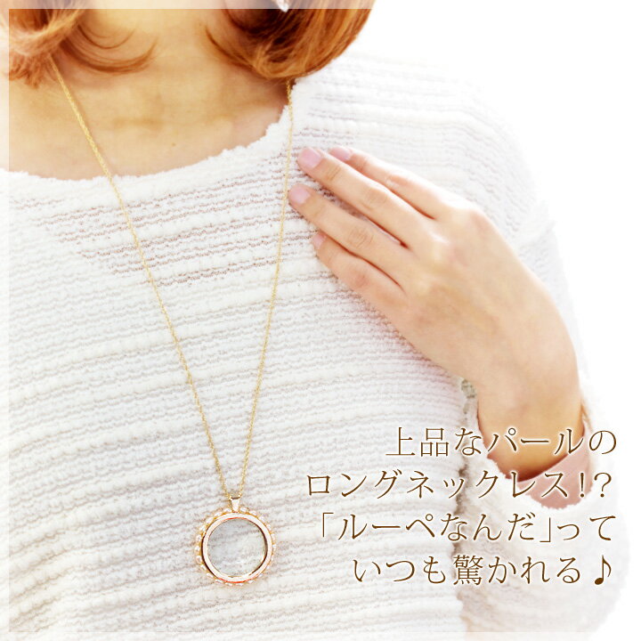 便利で可愛い おしゃれ ペンダントルーペ/アクセサリー ルーペ (拡大鏡/虫眼鏡)レディース ネックレス ピンクパール(淡水真珠) ゴールドカラー 還暦祝い 母 誕生日 プレゼント ギフト 女性 60代 50代 60歳【あす楽対応】【コンビニ受取対応商品】