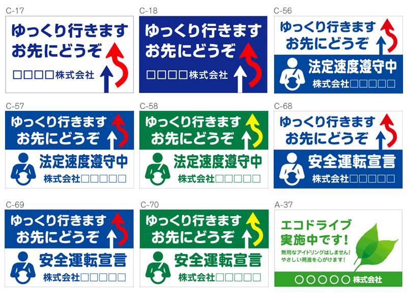 お車の大きさや、お色に合わせてご希望のステッカーをお選びください。