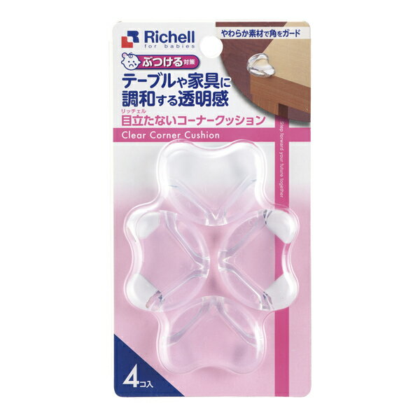 家具や机の角をやわらか素材でガード粘着テープで簡単に取り付けが可能な、クリアで目立たないコーナークッションです。