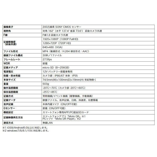 品番:EDR21Gタイプ:GPS付搭載 前後2カメラ 前後2カメラとGPS搭載・最強ハイスペックモデル ・前後2カメラ ・GPS ・対角162°広い視野角 ・FULL HD 200万画素 ・明暗に強いWDR ・全国のLED信号対応 ・常時録画/衝撃録画/手動録画 ・Gセンサー ・microSDカード16GB同梱(最大256GB対応) ・車両から電源供給 ・カメラ&本体 防水・防塵、耐振動 ・コンパクト設計 ・無線LAN ・専用スマホアプリ [システム構成] 本体、カメラ×2、カメラステー×2、GPSアンテナ、スイッチBOX、電源ケーブル、 microSDカード 16GB、SDカードアダプター、 取付用両面テープ、結束バンド、六角レンチ、取付取扱説明書(保証書付) JAN:4956170051730【在庫表示に関するお願い】 在庫表示は日々更新しておりますが、流動的な在庫になりますので【△残1個】や【△在庫少】の表示などの場合購入のタイミングで欠品になる可能性もございます。