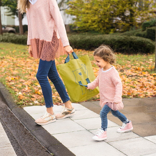 お子様の背丈に合わせた持ち手と、大人が持ってちょうどいい持ち手の高さがうまく一体化しているバッグです。